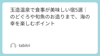 玉造温泉で食事が美味しい宿を探す人へ。会席・ビュッフェ・部屋食の特徴、のどぐろや蟹、しまね和牛、海鮮丼、温泉卵など料理の魅力、朝食の楽しみや食事時間の過ごしやすさを5施設で整理。落ち着いて味わう派も品数重視派も選びやすい。場所や雰囲気の違いもチェックできます。