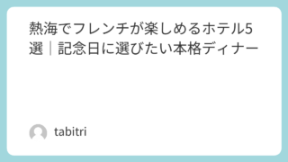 熱海でフレンチが楽しめるホテル5選を紹介。フォンテーヌ・ブロー、パールスター、グランバッハ、熱海風雅、ホテルニューアカオを口コミから解説。海絶景ディナー、前菜ビュッフェ、客室露天・インフィニティ温泉、夕朝食プランの選び方と送迎の注意点も。