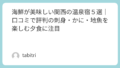 今回の5宿は、口コミで「蟹がおいしかった」「料理が良かった」「温泉でゆっくりできた」という感想が見られる宿ばかりです。