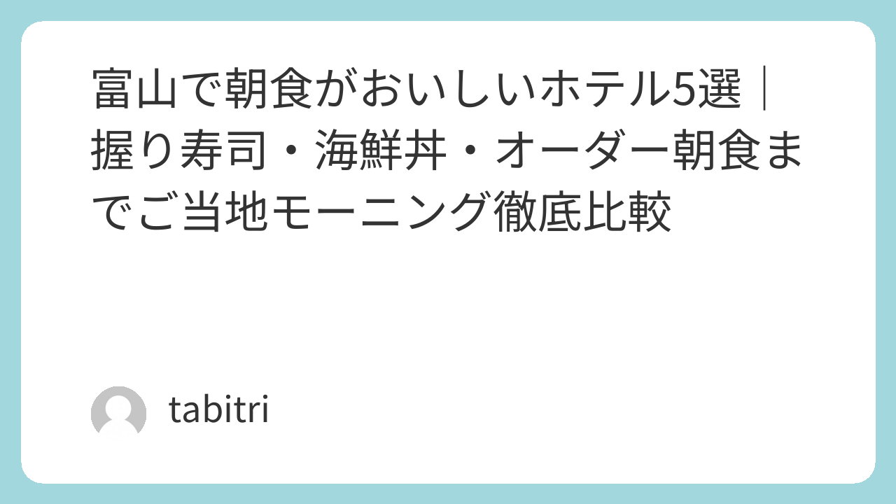 富山で朝食がおいしいホテル・宿を選ぶときは、「ご当地らしさ(海鮮・郷土の味)」「食べ方の楽しさ(寿司・海鮮丼・オーダー)」「滞在スタイル(駅近 or 温泉)」の3点を意識すると、満足度が上がりやすいです。